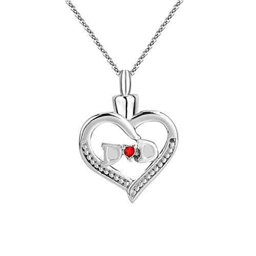 ZARABE Cremation Jewelry DAD In My Heart Red Rhinestone Hollow Memorial Urn Necklace Keepsake Ash Holder (DAD)