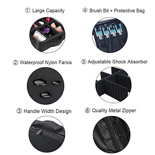 Portable Travel Makeup Bag,Makeup Train Case Artist Cosmetic Bag Organizer with 6 Pcs Adjustable Dividers for Cosmetic Makeup Brushes Toiletry Jewelry...