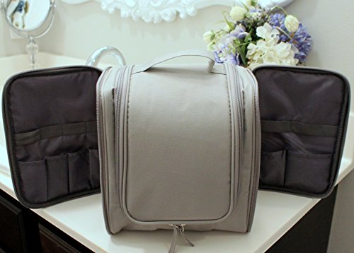 MULTIPLE POCKETS - Keep all your toiletries upright and snug with the many different compartments and zipper pouches. Side compartments allow for all sizes of make up and tooth brushes.