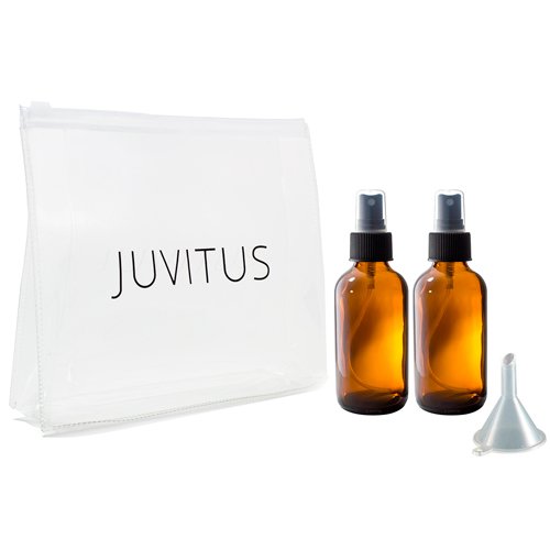 Amber Glass Fine Mist Spray Bottle - 4 oz (2 Pack) + Clear Travel Bag and a Funnel