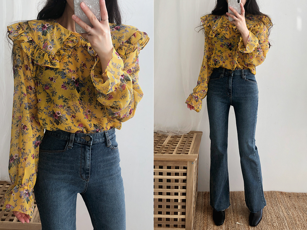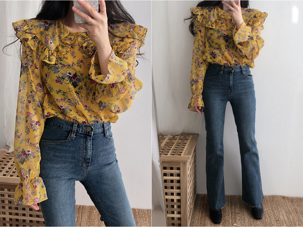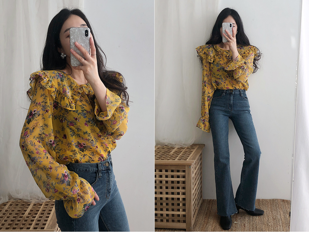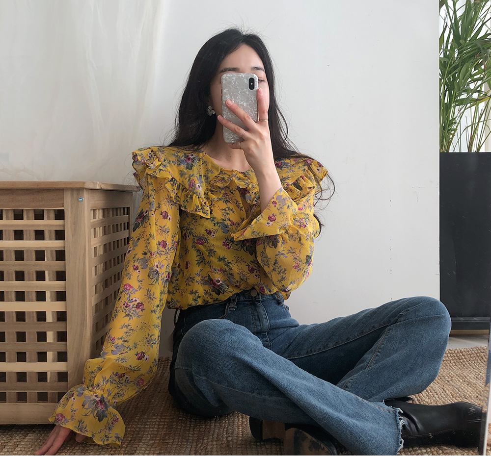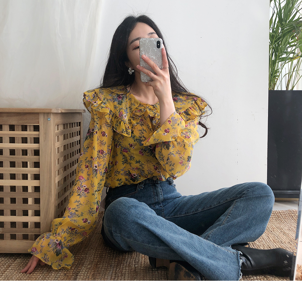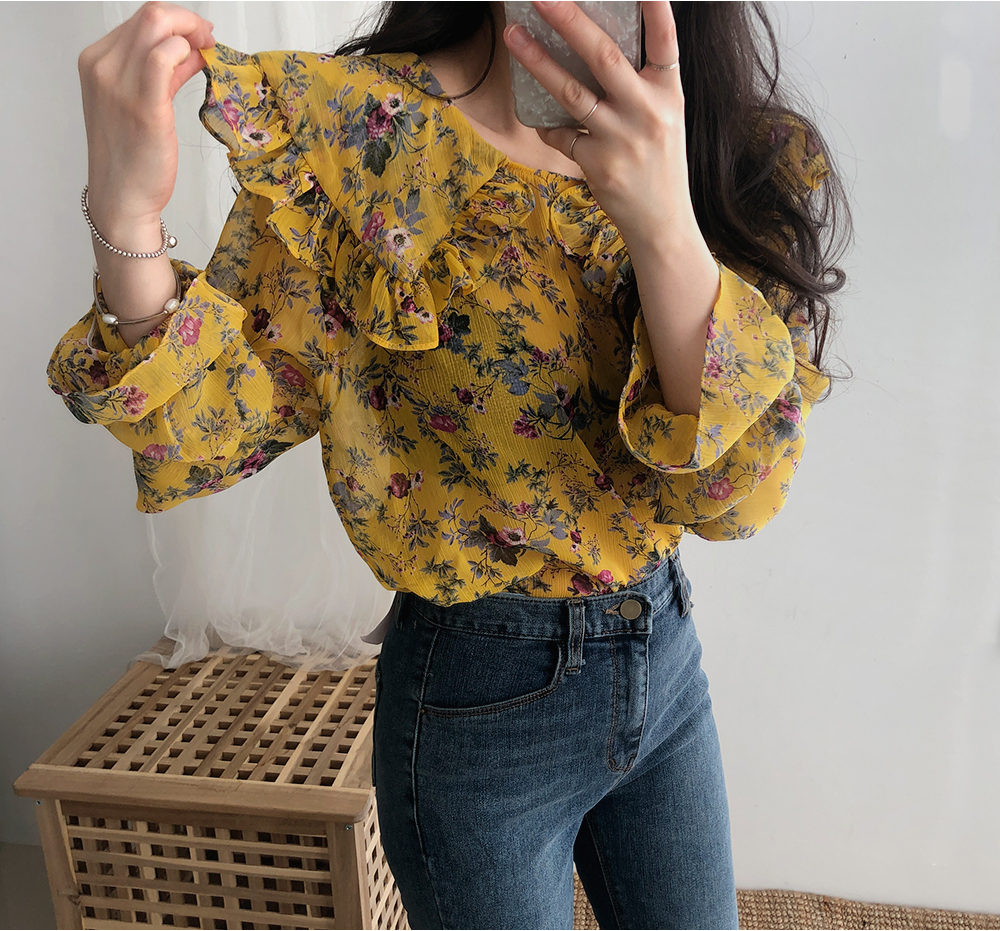 플라워 프릴 쉬폰 블라우스