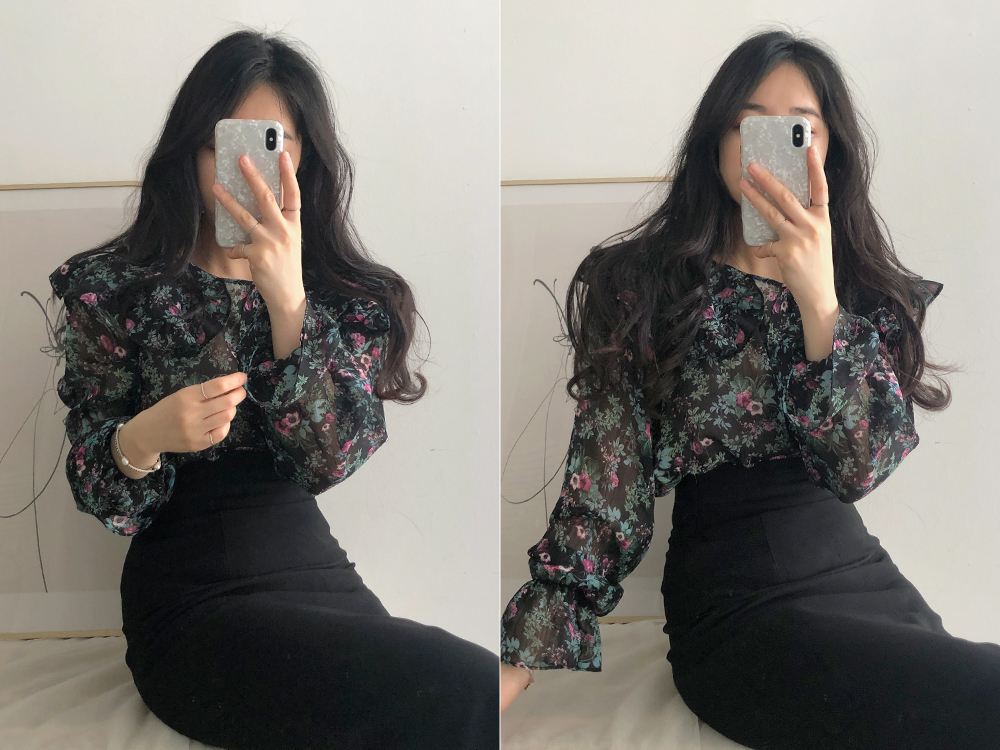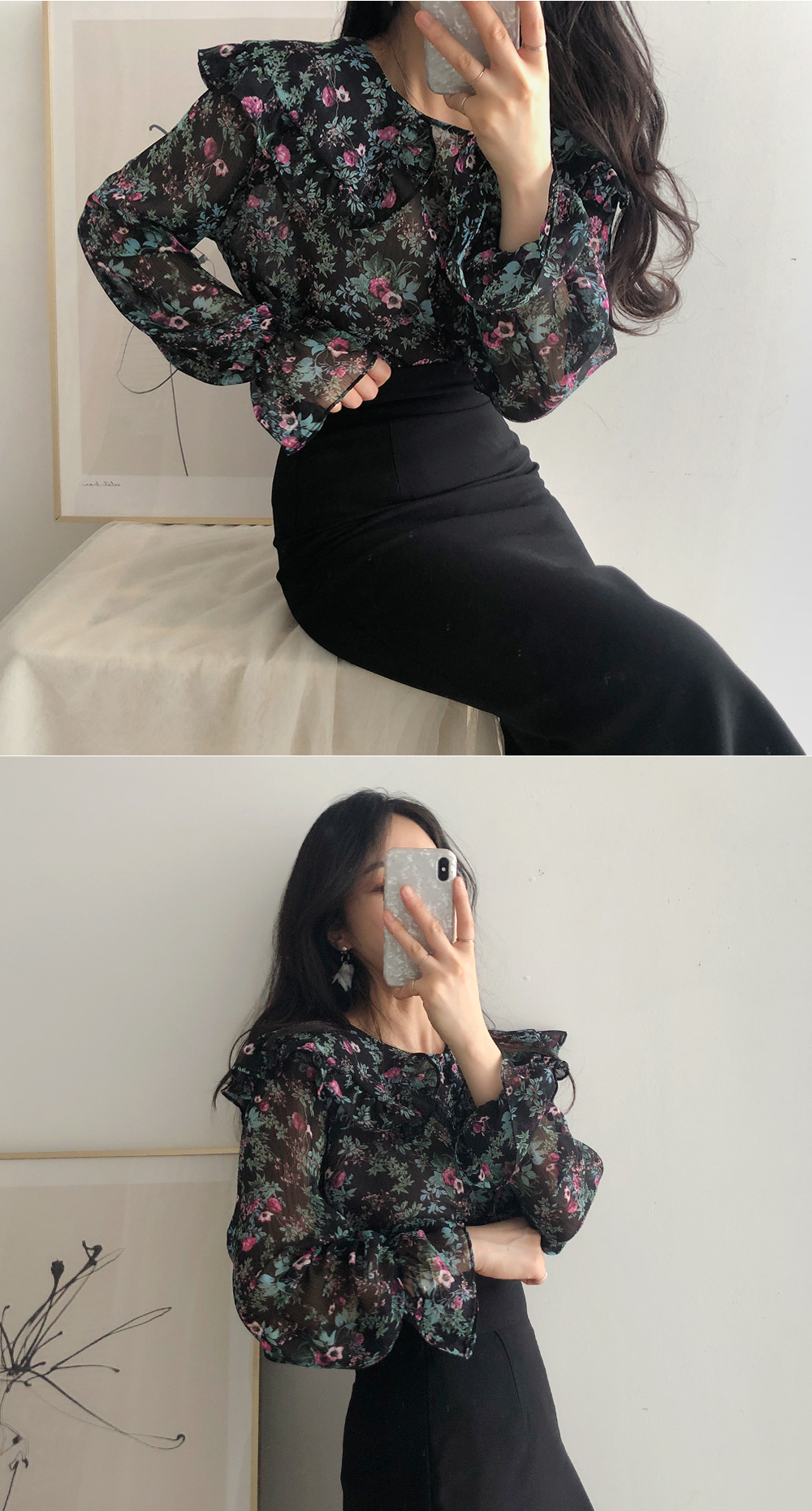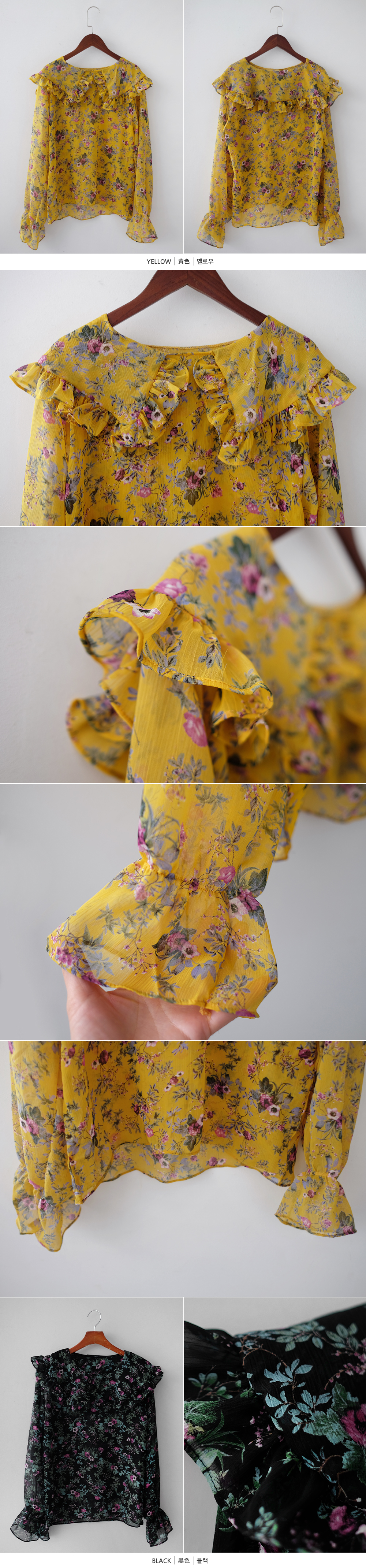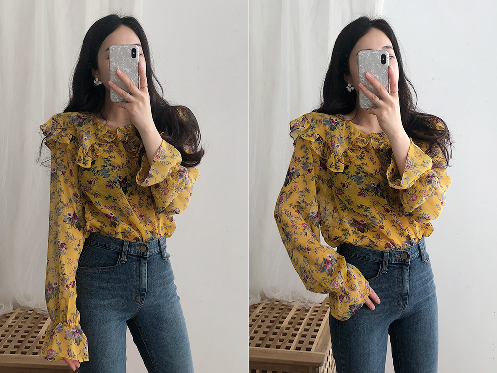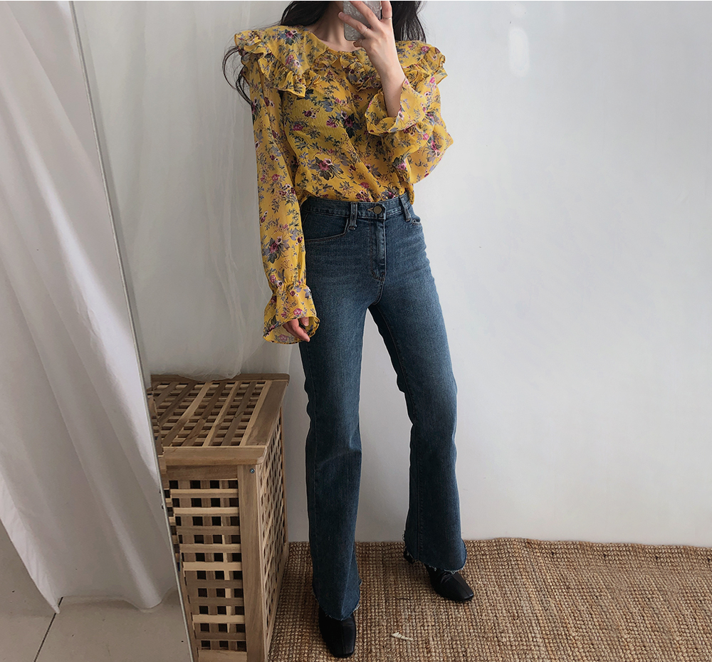 플라워 프릴 쉬폰 블라우스