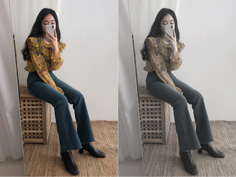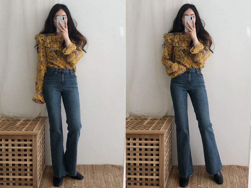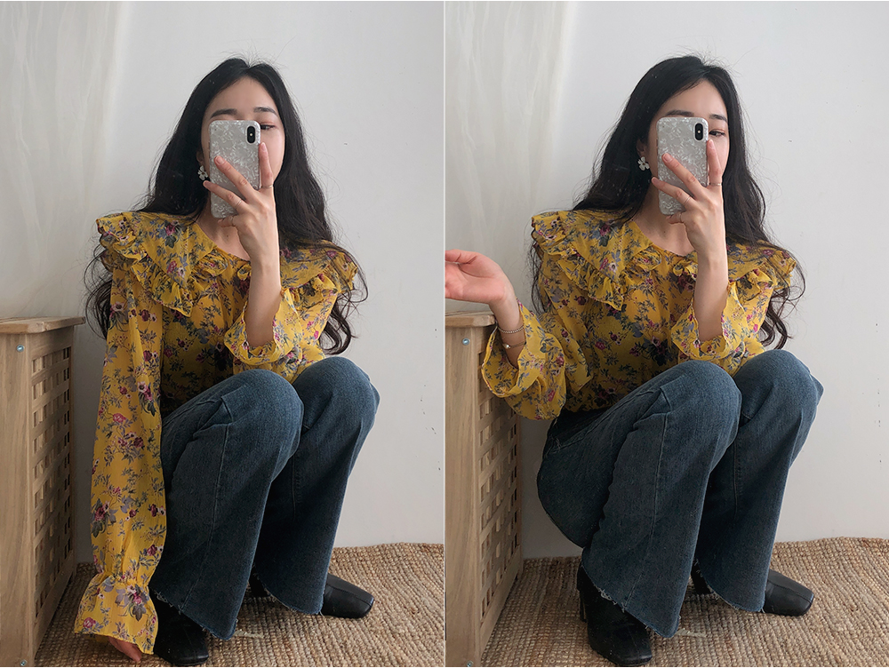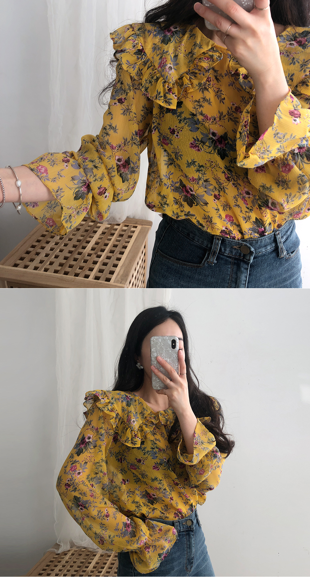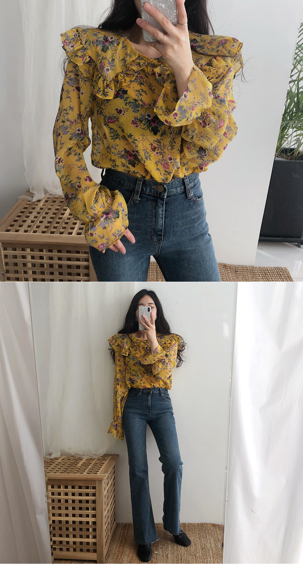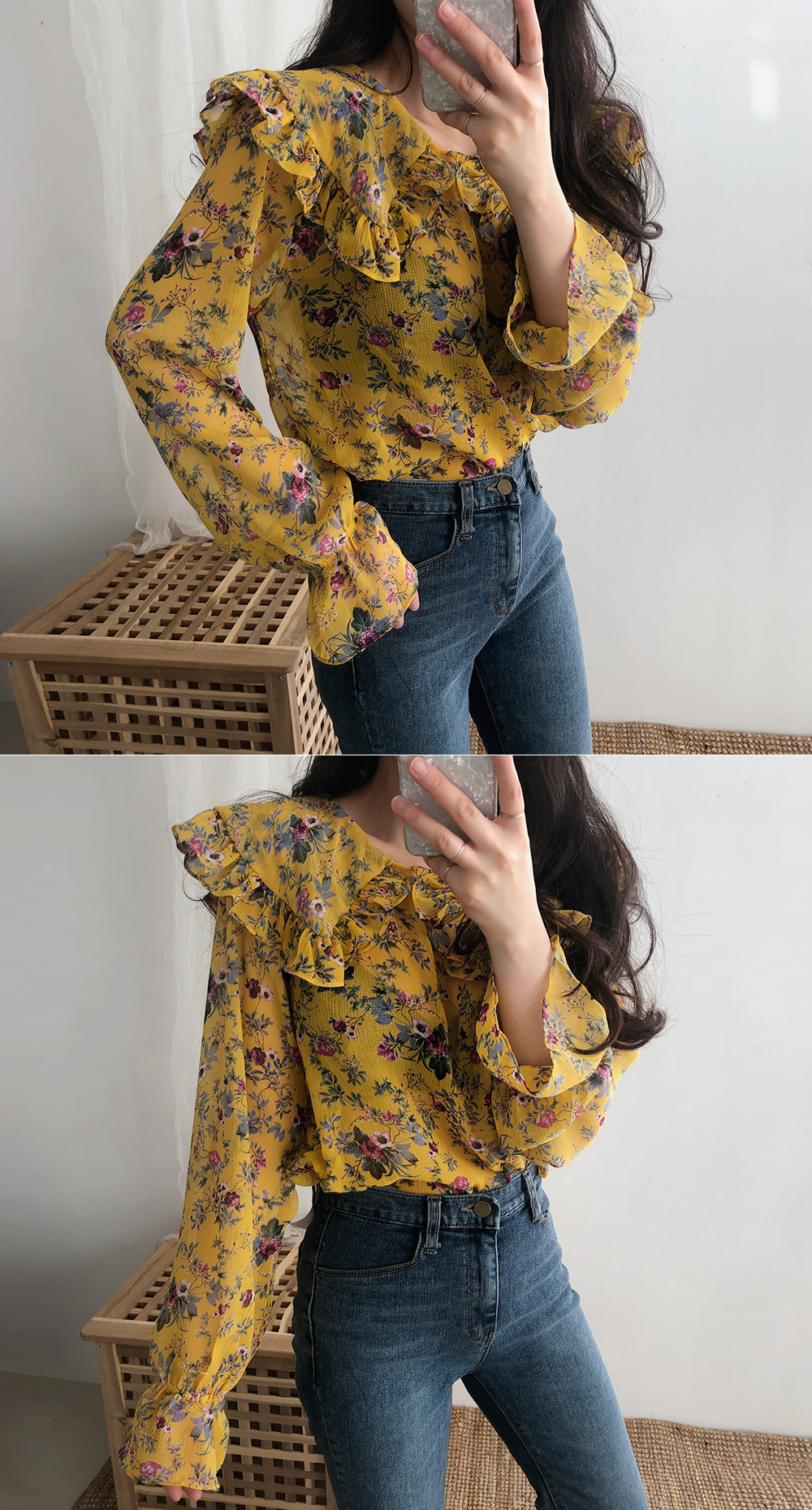 플라워 프릴 쉬폰 블라우스