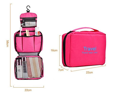 SunKni Portable Toiletry Bag Wash Bag Bathroom Hanging Bag Travel Bag Zipper Storage Bag Drawer Dividers Cosmetic Makeup Pouch with Multi Pockets Hook for Mens Womens Girls Boys Kids (Rose Red)