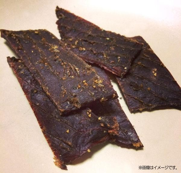 | 醤油をベースに、ピリッと胡椒のきいた辛い味付けのビーフジャーキーです。 |