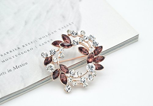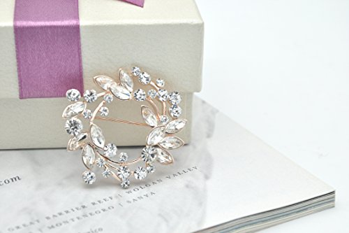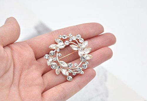 -. Title : Gyn&Joy Clear Crystal Rhinestone Floral Wreath Pin Brooch BZ005