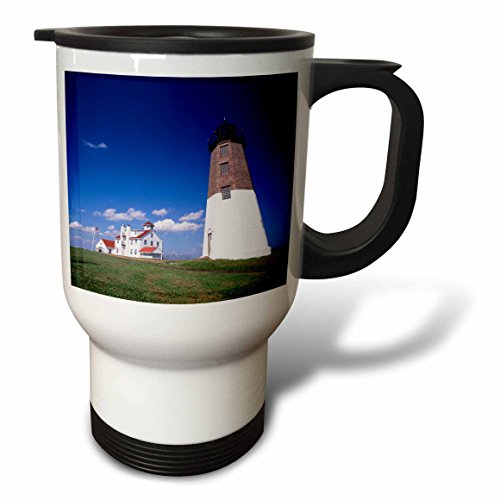 3dRose tm_192162_1 USA, Rhode Island, Point Judith Lighthouse Travel Mug, 14 oz, White