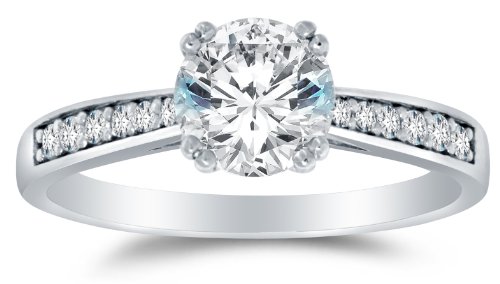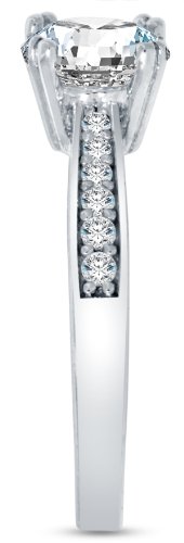 - Title : Size 8 - Solid 14k White Gold Highest Quality CZ Cubic Zirconia Engagement Ring - Round Brilliant Cut Solitaire with Round Side Stones (1.5cttw., 1.0ct. Center)