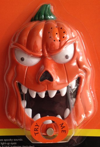 SPOOKY MAD PUMPKIN HALLOWEEN DECORATION EYES LIGHT UP MAKES SPOOKY SOUNDS BATTERY OPERATED (8" TALL)