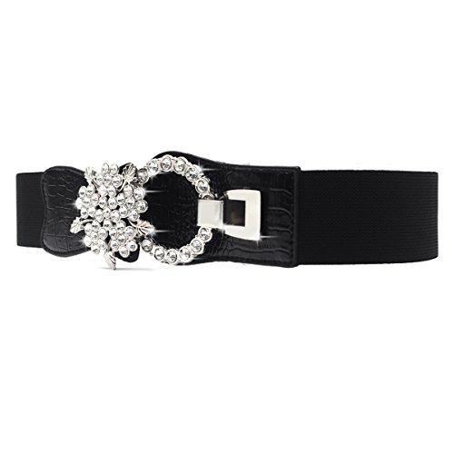 -. Title : Women's Elastic Stretch Waist Belt Rhinestone Buckle Cinch