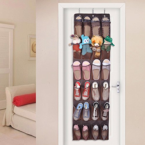 -. Binding : Kitchen -. Brand : Kitty -. Feature : Material:Non-woven Fabric, Mesh Fabric / This easy to assemble over-the-door shoe organizer has 24 pockets in the stylish and popular coffee color. / Store and protect up to twelve pairs of shoes. Instantly de-clutter your closet or bedroom while also saving your shoes from unwanted damage. / This shoe organizer is a snap to assemble using the provided hooks and hangs conveniently over standard size doors. / Frees up floor space by hanging over the door -. IsAutographed : 0 -. Label : Other -. Manufacturer : Other -. ProductGroup : Home -. ProductTypeName : HOME -. Publisher : Other -. Studio : Other -. Title : 24 Pocket Over The Door Shoe Organizer Multi-function Space Saving Storage Closet Holder