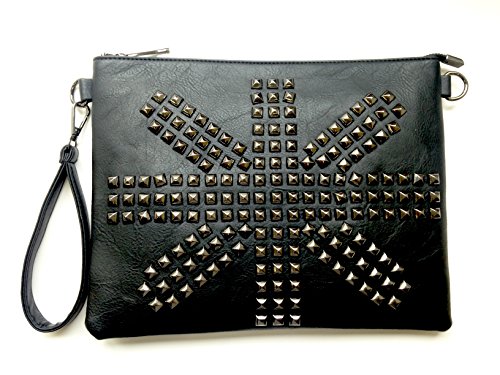 -. Title : ユニオンジャック 星条旗 ピラミッド スタッズ フェイクレザー ユニセックス 2WAY クラッチバッグ