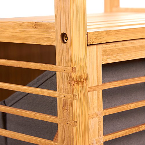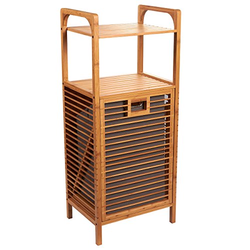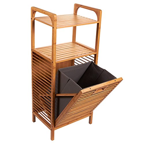 Bamboo Shelf with Tilt-Out Laundry Hamper - Perfect for Bathrooms and Spas, Brown, 15.8 x 37.5 x 11.8 Inches