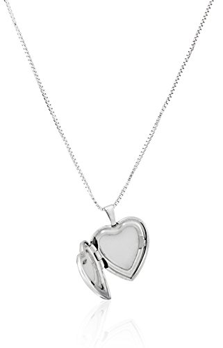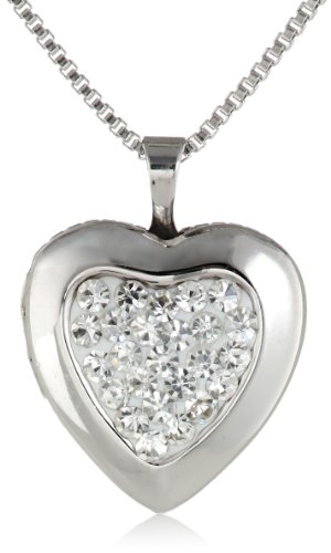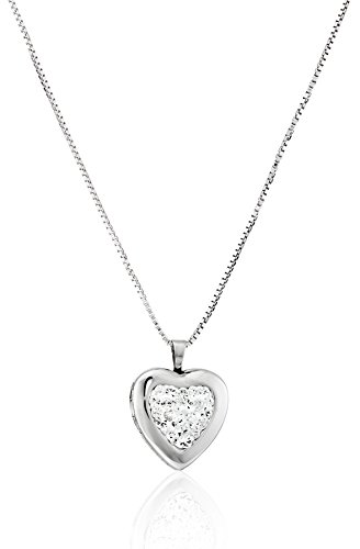 Sterling silver necklace featuring polished heart-shape locket with crystal-studded center