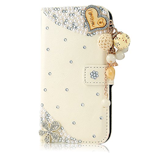 - Title : S5 Case,Galaxy S5 Case - Mavis's Diary 3D Handmade Bling Crystal LOVE Heart Pendant Sparkle Glitter Rhinestone Diamond Flowers PU Leather Wallet Type with Magnetic Clasp Credit Card Holder Design Folio Case Cover for Samsung Galaxy S5 I9600 SM-G900A SM-G900T SM-G900P SM-G900V SM-G900R4 Developer Edition with Soft Clean Cloth (White)