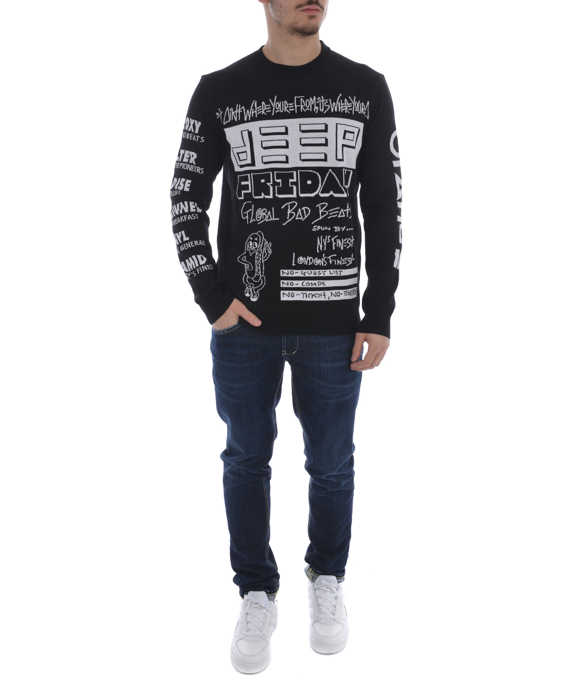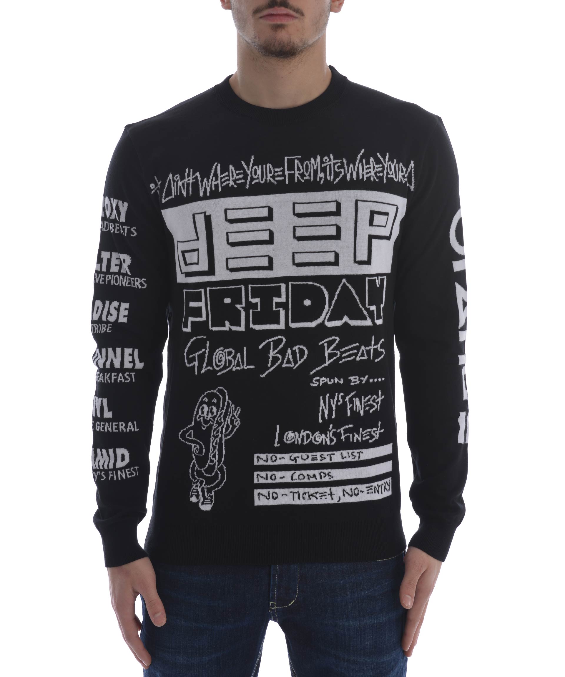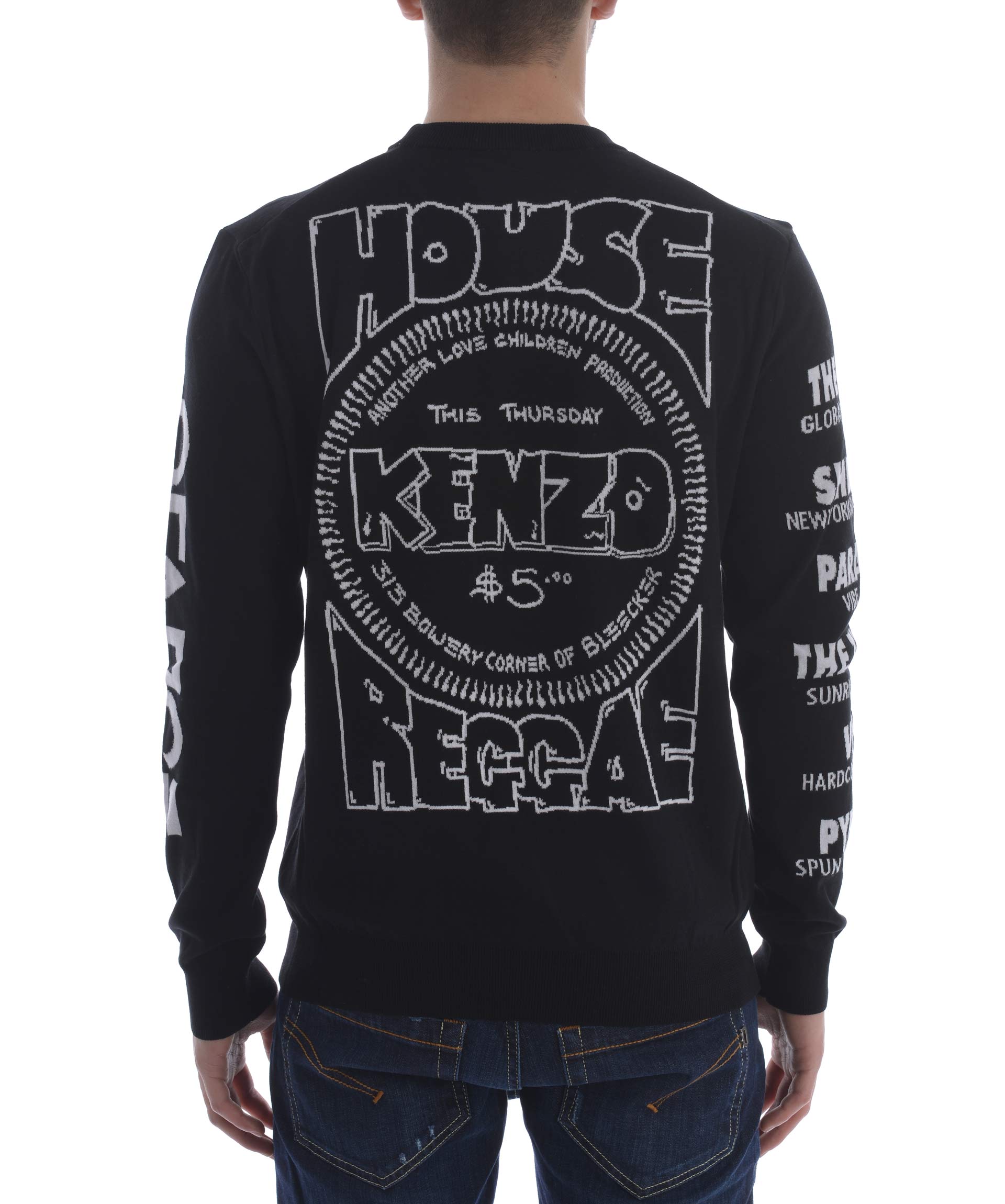 Flyers Sweater from Kenzo: Black Flyers Sweater with crew neck, all-over print design, long sleeves, a ribbed neckline, cuffs and hem.