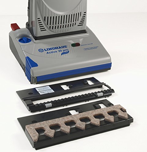 It is equipped with a complete set of on board accessories including the replacement filter bag. Very versatile, goes from rugs and carpets to hard floors such as ceramic, marble and wood thanks to a series of roller covers (optional). The dynamically balanced brush roller is mounted on metal supports with ball bearings. In case of blocking a speed sensor sends the information to the electronic control that switches off the motor immediately. The transmission has a double geared belt.Feature