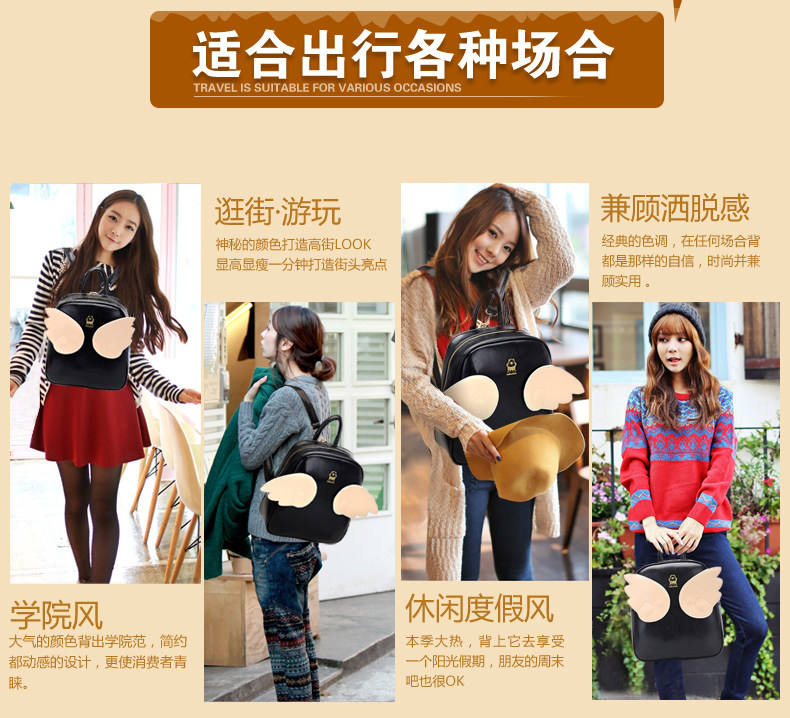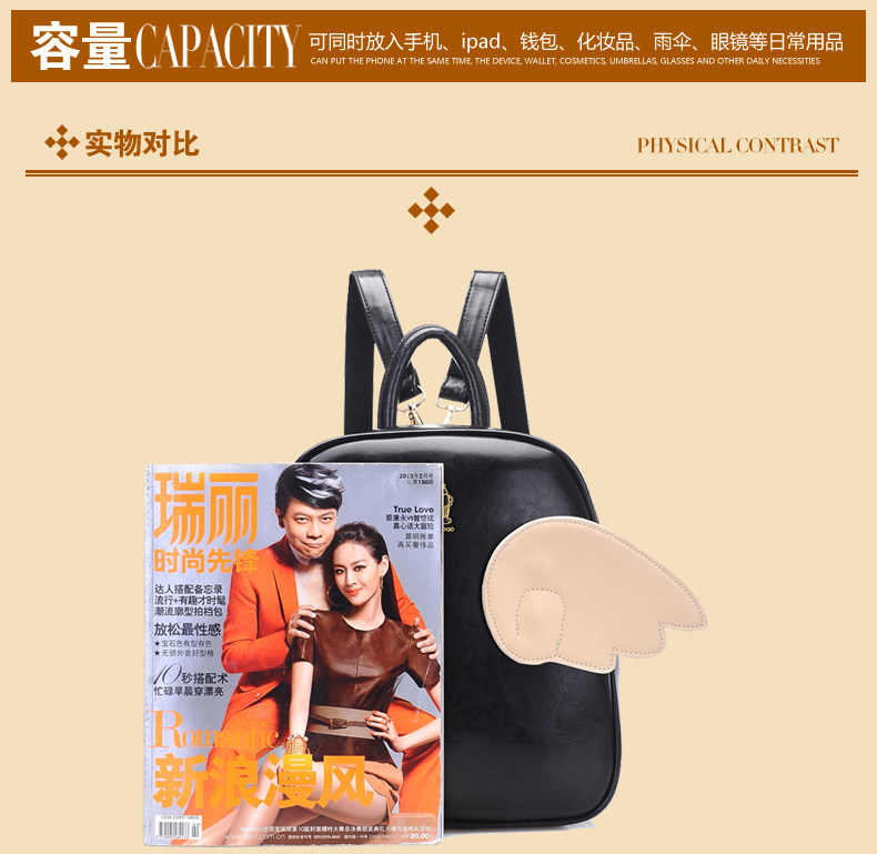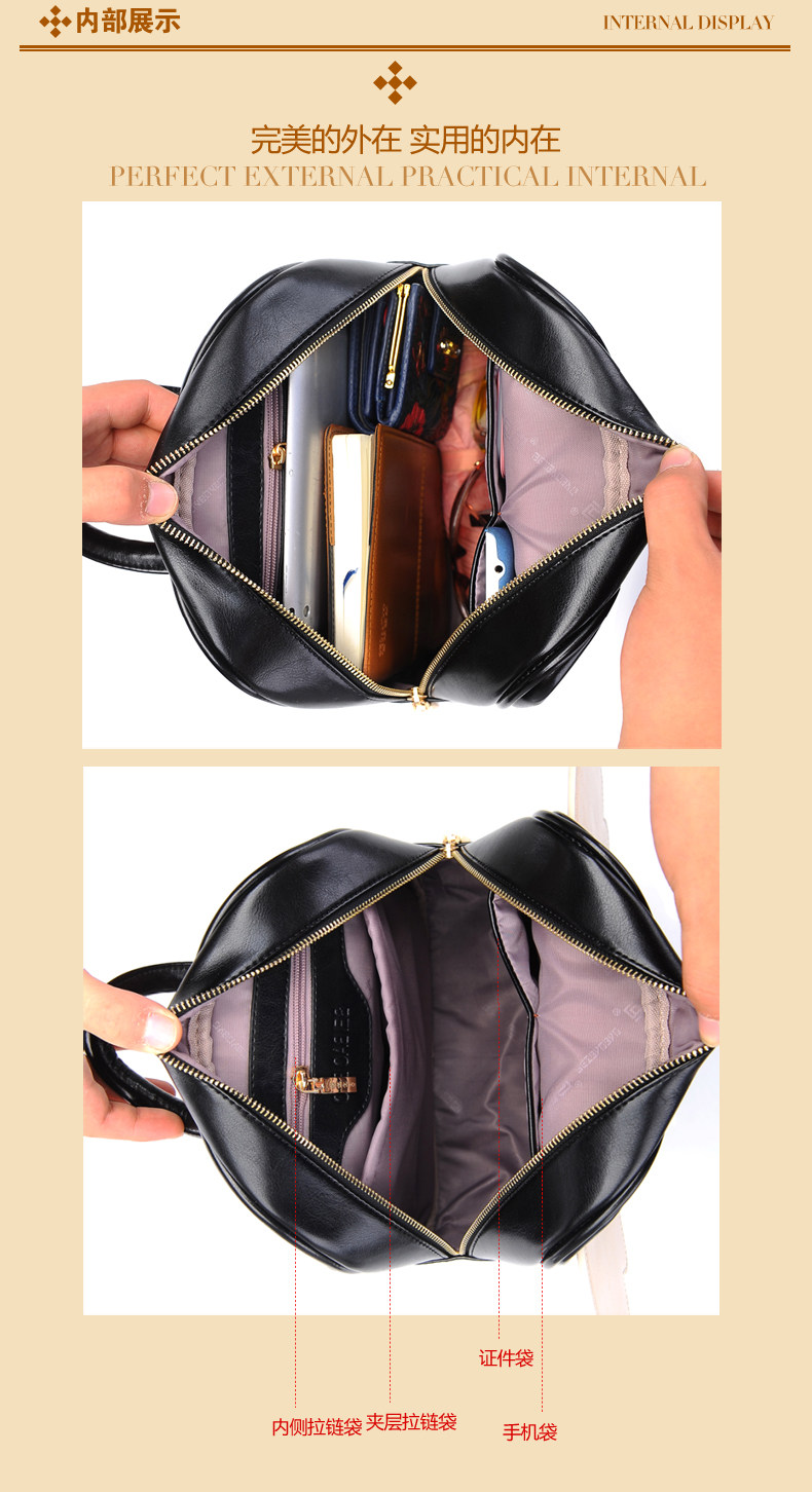 韩版潮牛皮糖果色单肩双肩。内部1个隔层拉链袋 1个拉链袋,2个置物袋