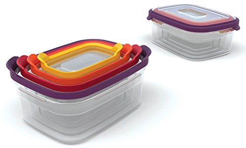 Easy-find, color-coded nesting food storage container set with snap-together lids