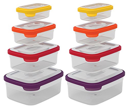 Set includes 2 each of: 8-ounce, 18-ounce, 37-ounce, and 63-ounce containers with lids