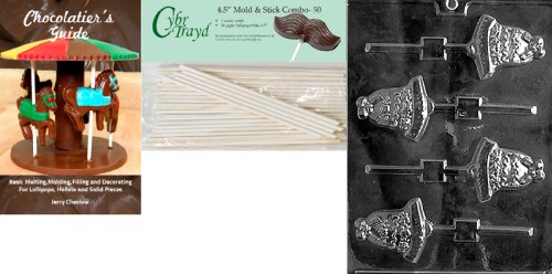 Cybrtrayd 'Small Bell Lolly' Wedding Chocolate Candy Mold with 50 4.5-Inch Lollipop Sticks and Chocolatier's Guide