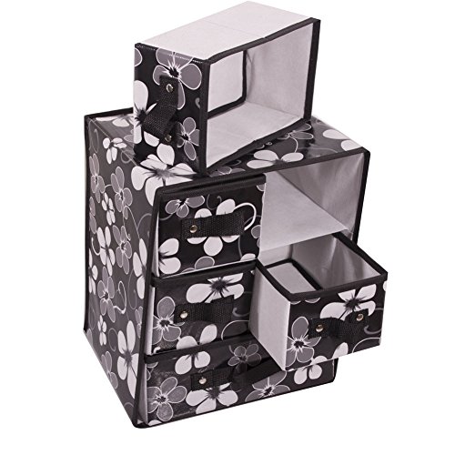 -. Feature : Style: Underwear Organiser / Size:33*22*26cm/13"*8.6"*10.3" / Material: Non-Woven with waterproof / Application: Putting And Classifying Underwear, Bra, Underpants And Socks, etc. / Three Layers Five Drawers.Foldable, convenient assembly,Waterproof