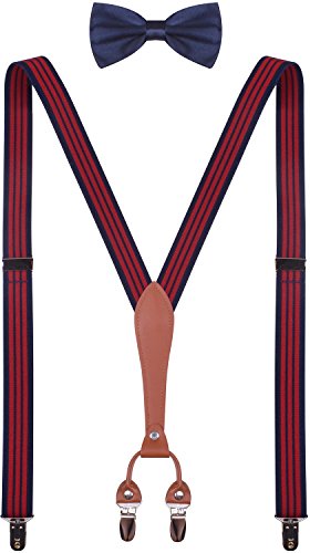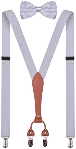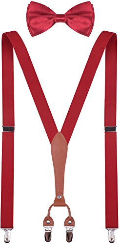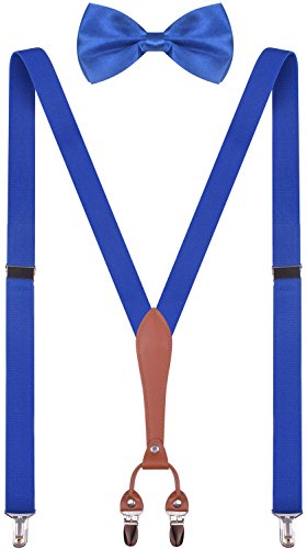 The bow tie and suspenders has two different size for different people to help hold up the pants and be attractive.