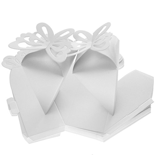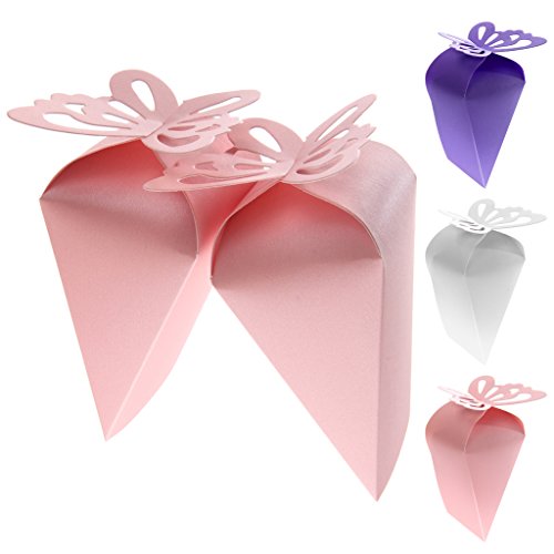 -. Feature : Perfect for any occasion - Weddings, Engagements, Anniversaries, Parties, Baby shower, Bridal shower etc. / Gorgeous wedding sweets favour triangle boxes with a butterfly on the top, pearlised effect finish. / These 50 favour boxes are supplied as flat pack and not made up. / Its quick and very easy to assemble.
