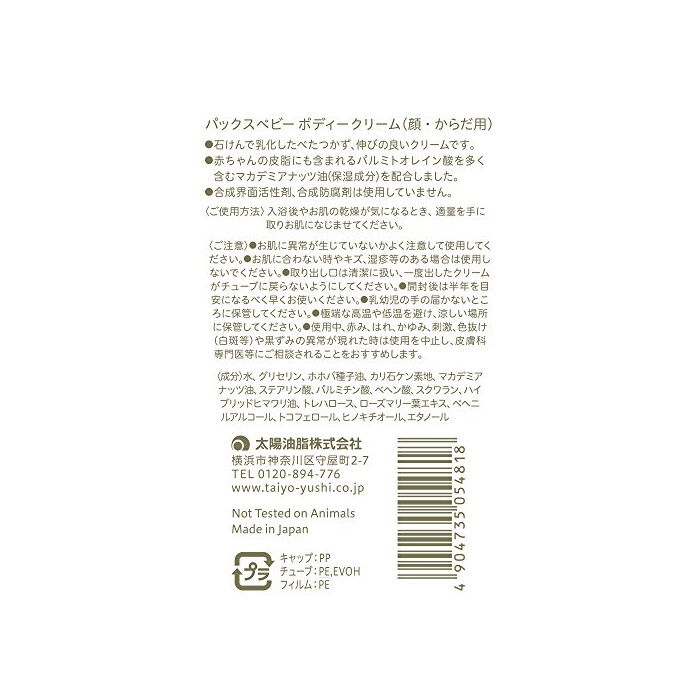원본상품명: パックスベビ? ボディ?クリ?ム 50g