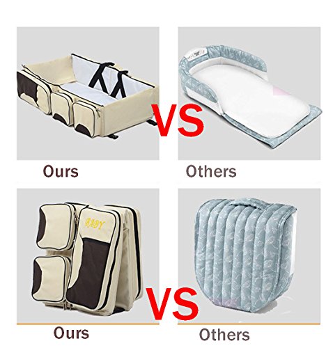 Features: Open the bag and transforms into a comfortable bed and change table. Provides your baby with a safe,sturdy and comfortable place for your baby to sleep anywhere you go. Unzip the end panels to make diaper changing easy on the go! 4 zipper pockets for storing diapers,and other baby necessities. Multifunctional messenger diaper bag and stroller organizer takes the stress out of changing your baby when out of the house.