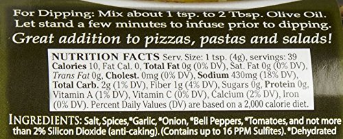 - Featuring a built-in adjustable grinder top. Fine to coarse Italian Bread Dipping Seasonings. -- Non-Refillable --