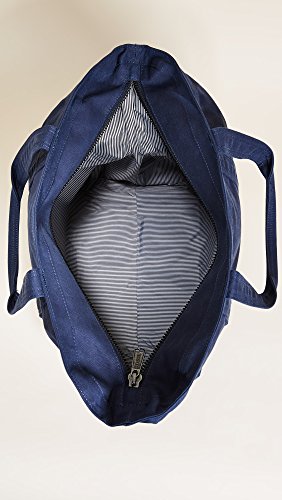 An extra large Herschel Supply Co. tote in a durable weave. Patch front pocket. Snap top opens to a lined, 1-pocket interior. Double handles.