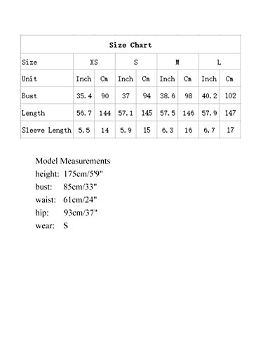 X-Small: Bust: 35.4 inch, Length: 56.7 inch, Sleeve Length: 5.5 inch