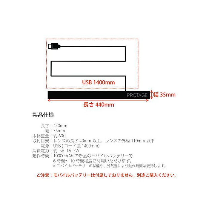 원본상품명: PROTAGE 結露防止 レンズヒタ 夜露除去 USBウォマ P-LH02
