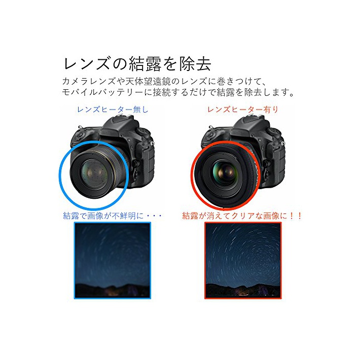 카메라 망원경 등의 렌즈를 따뜻하게고, 결이슬(러시아)의 발생을 방지합니다.한랭 오름 습환경하에도 안심 고출력 모델입니다.