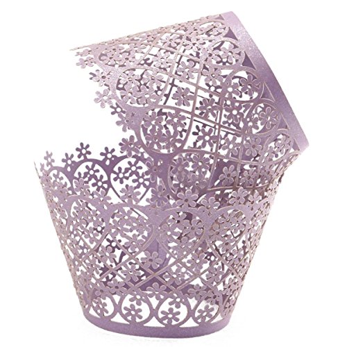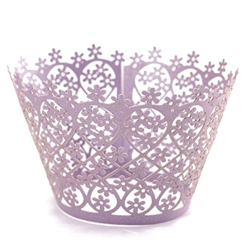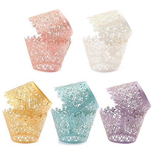 Ellami 50pcs Pearly Paper Filigree Vine Lace Cupcake Wrappers Wraps Cases Wedding Birthday Decorations