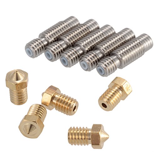 PChero 5pcs 3D 0.4mm Extruder Brass Nozzle Printer Head + 5pcs 1.75mm Stainless Steel Nozzles Throat with PTFE Tube, for E3D V6 Makerbot Printer