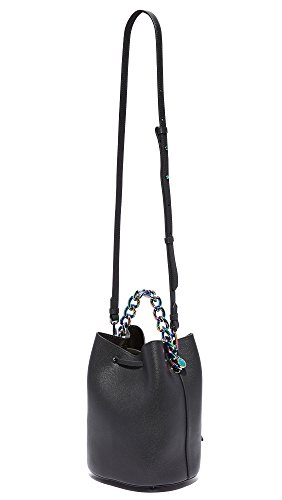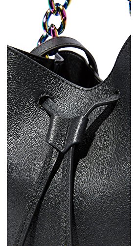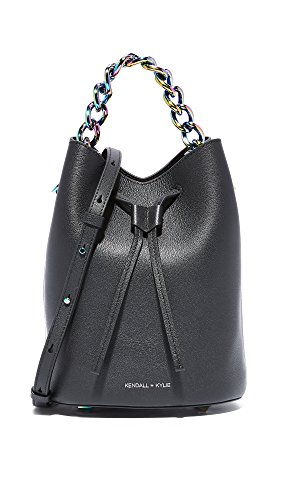 A faux-leather KENDALL + KYLIE bucket bag with a chunky chain handle. Drawstring top and lined, 3-pocket interior. Optional, adjustable shoulder strap. Dust bag included.