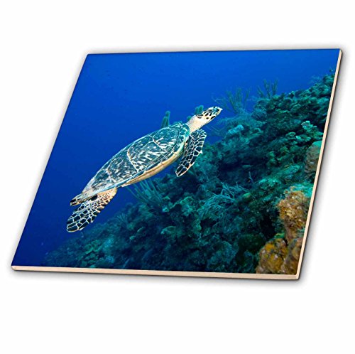 3dRose ct_74847_4 Cayman Islands, Hawksbill Sea Turtle & coral reef CA42 PSO0091 Paul Souders Ceramic Tile, 12"