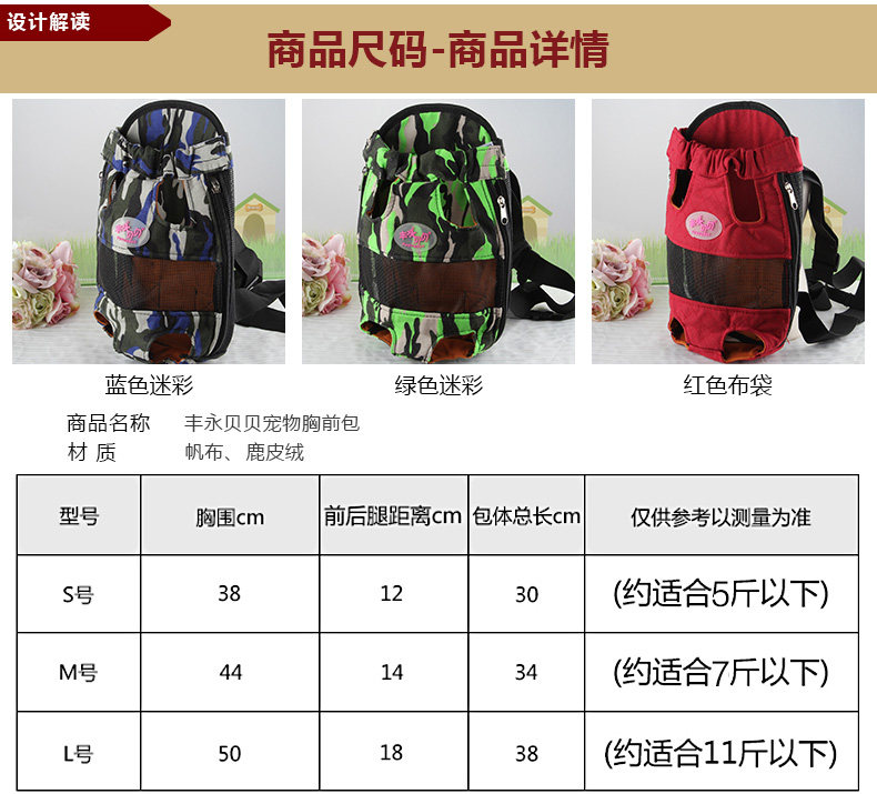 A、外贸定单,质量上乘,用料讲究,适合博美、京巴等小型及3个月内的幼犬,双肩背、胸背两用
