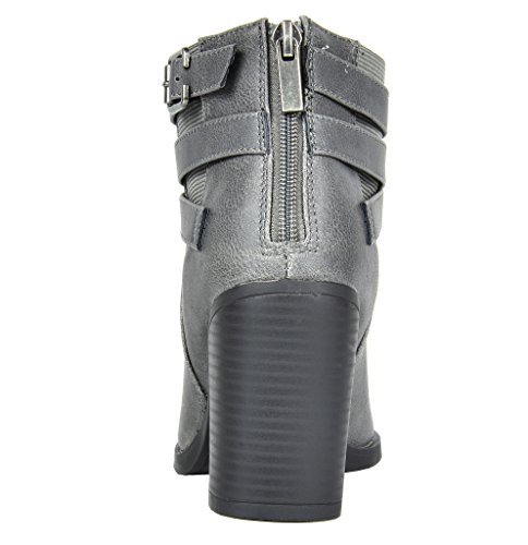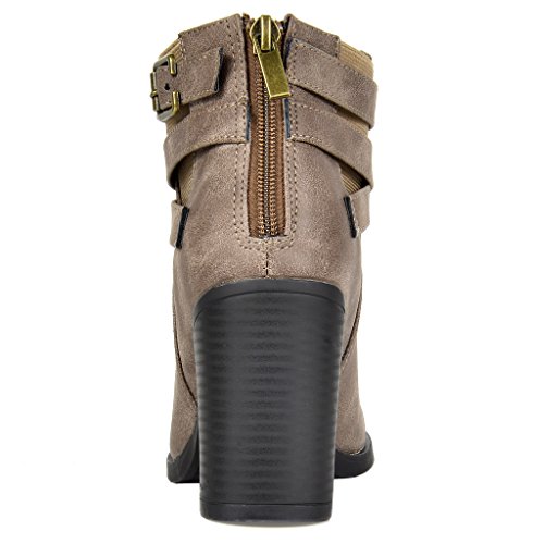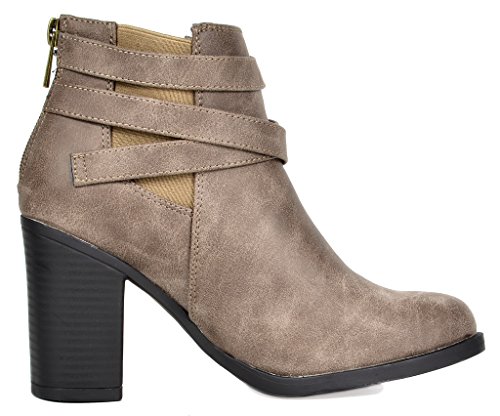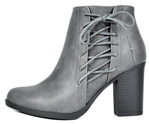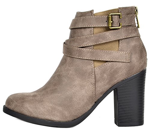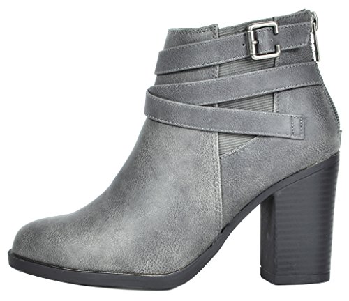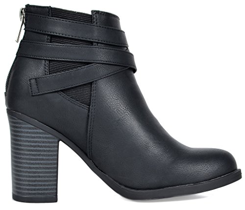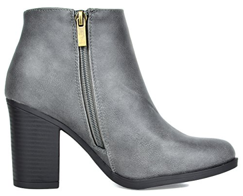 Product DescriptionLook absolutely stunning with these adorable block heel booties! Featuring leatherette upper, almond toe, chunky heel, stitching detail, striped lining, zipper closure for easy on/off, and finished with cushioned insole for comfort0