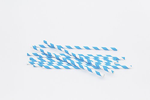 Light Blue Striped Drinking Paper Straws for Birthday Party Wedding Baby Shower Biodegradable Straw Box of 100
