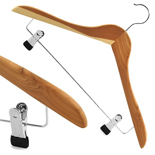 -. Title : Hangerworld Pack of 10 Premium Quality Natural Cedar Wood Clothes Hanger with Pants / Skirt Clips - 17 Inches
