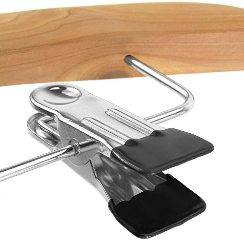 -. Feature : Pack of 10 premium quality cedar wood clothes hangers with pants/skirt clips - 17.3 inches. / Quality hanger made from cedar wood with a smooth, natural finish. / Naturally repel moths & insects. Absorbs moisture and odours. / Adjustable width waistband clips with soft lined jaws for pants or skirt waistbands. / Strong polished chrome swivel hook with smooth rounded end. Size: 17.3 inches wide.