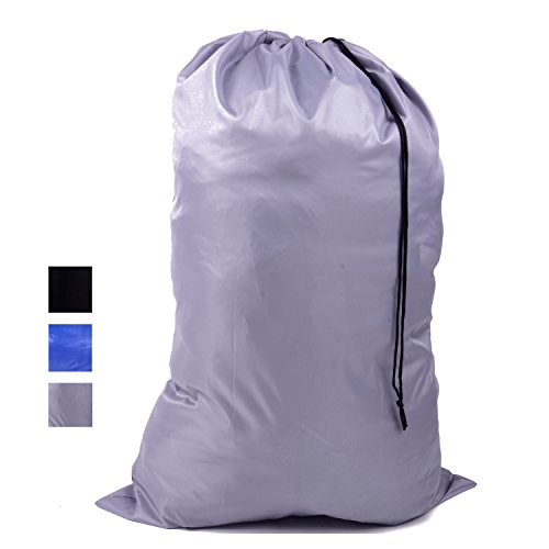 Large 100% Nylon Laundry Bag — Durable, Water-Resistant & Easy to Carry — Laundry Hamper Ideal for Apartments, Travel, Dorm Rooms or Vacations (Grey)