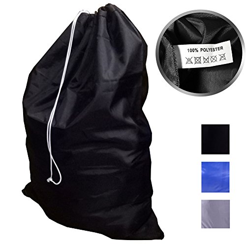 Large 100% Nylon Laundry Bag — Durable, Water-Resistant & Easy to Carry — Laundry Hamper Ideal for Apartments, Travel, Dorm Rooms or Vacations (02BLACK)