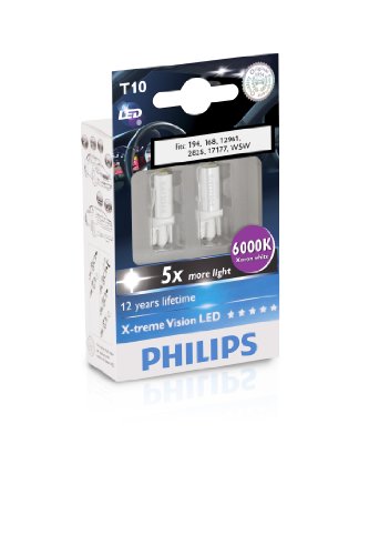 Philips T10 retrofit X-tremeVision LED 6000K Interior light, Fits 194, 168 (Pack of 2)