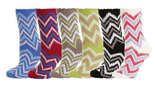 -. Title : Mamia 6 Pairs Women's Cozy Slipper Socks Fuzzy Sock Multi Color (Zig Zag)