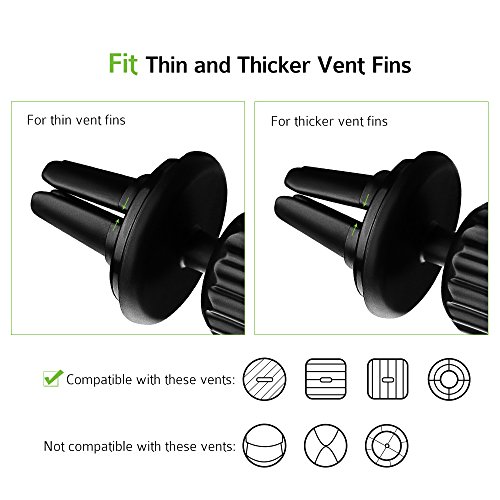 Detail-oriented: With Built-in 360 ° Swivel Ball,it ensures optimal positioning angle with simple and effortless installation, and the mount base remains fixed firmly into the air vent of your car. The special design of slots fit thin and thick vent fits, and the high quality rubber slots on the rear protects your air vents from scratching.