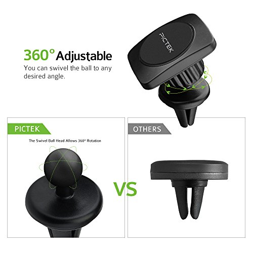 Pictek Air Vent Magnetic Cell Phone Car Mount Holder and Kickstand with 360 Rotatable Swivel Ball, Black